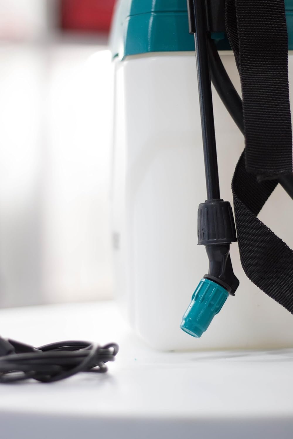 - Akumuliatorinis purkštuvas su įkraunama ličio baterija ir 5-ių litrų baku.