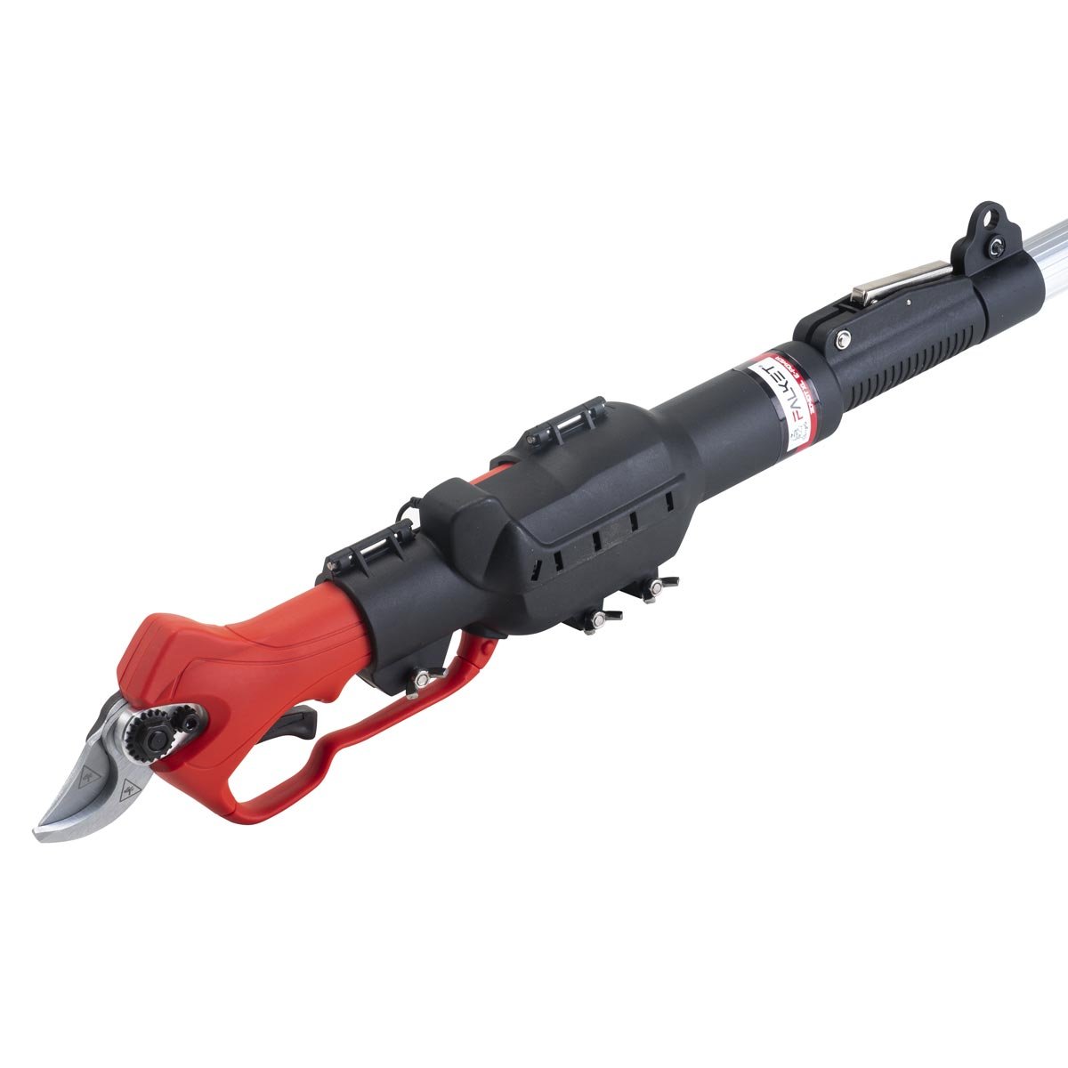 - Akumuliatorinis sekatorius su teleskopiniu kotu 130/180 cm su kuriuo galėsite genėti virš 3-jų metrų aukščio medžius!