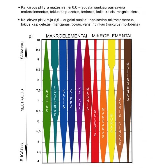 | Reikalingas dirvos pH | Esamas dirvos pH