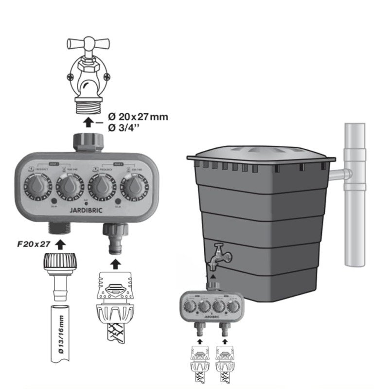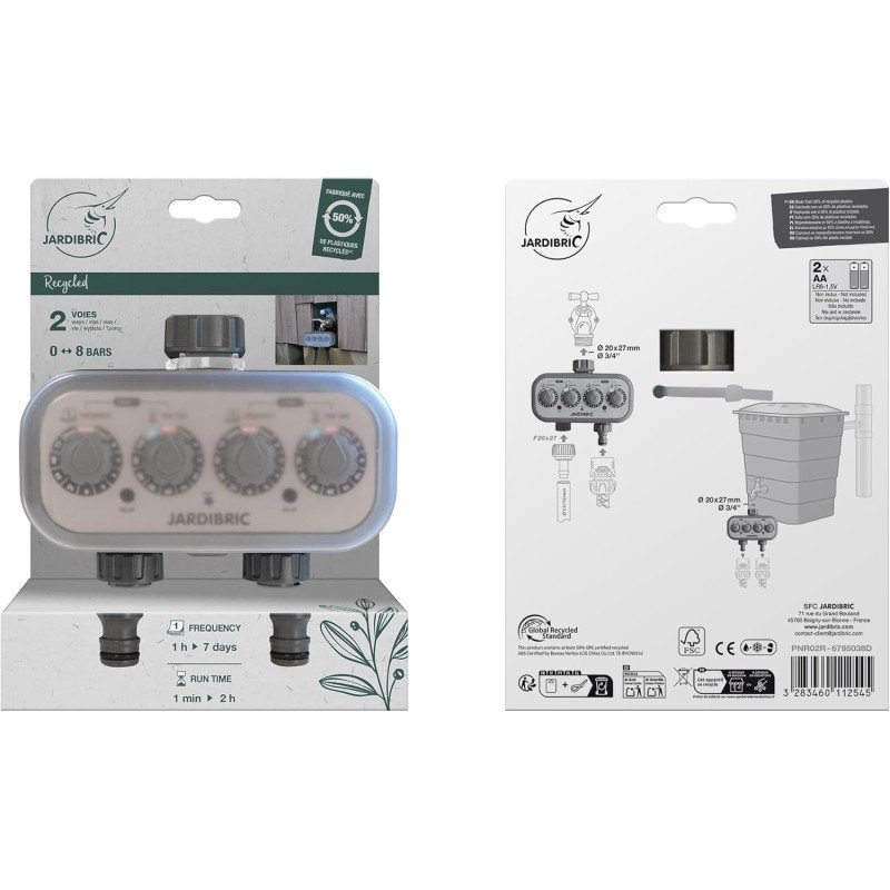 JARD (Prancūzija) valdiklio valdymas labai paprastas. Nustatysite valdiklyje laistymo intervalą ir trukmę, o daugiau Jums niekuo rūpintis nereikės. Šiuo valdikliu vienu metu galėsite palaistyti, net dvi laistymo zonas, kas labai patogu norint vienus augalus laistyti dažniau ir daugiau, o kitus – atvirkščiai.