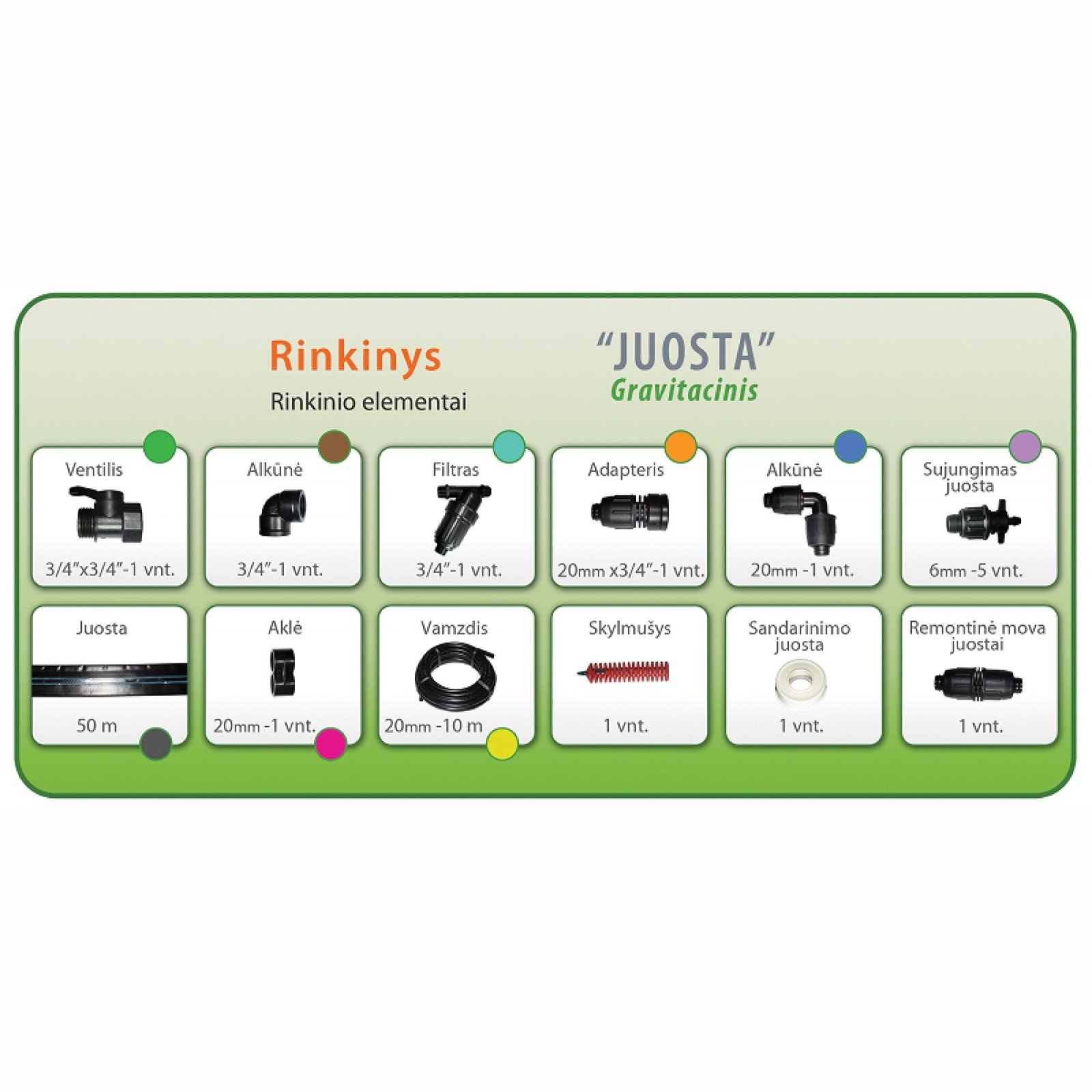 Lašelinio laistymo rinkinys „Juosta“ gravitaciniam slėgiui