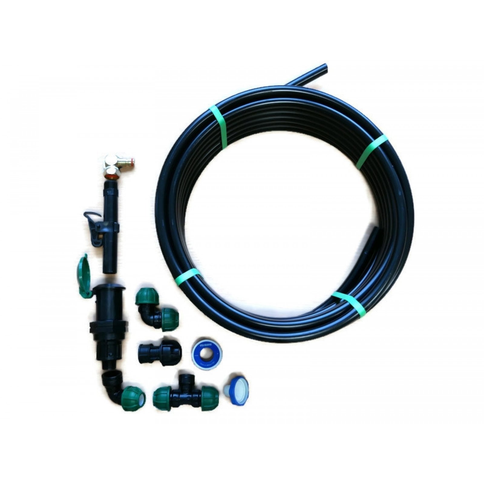 Rinkinys „Vandens Taškas“ – tai labai patogus būdas įsirengti laistymo tašką savo kieme. Ši konstrukcija leidžia greitai ir be papildomų pastangų prijungti laistymo žarną prie vandens šaltinio Jūsų sode, darže, šiltnamyje ar tiesiog viduryje Jūsų sklypo. Tai patogus ir ekonomiškas sprendimas siekiantiems taupyti laiką, jėgas ir vandenį. Rinkinį sudaro aukštos kokybės, patvarios detalės: laistymo taškas – hidrantas, greitas pajungimas laistymo žarnai ir jungiamosios detalės. Ši sistema nereikalauja papildomo aptarnavimo prieš žiemą, tuo pasirūpins drenažinis vožtuvas. Rinkinį paprasta įdiegti, naudoti ir prižiūrėti žmogui neturinčiam jokių specialių įgūdžių laistymo sistemų srityje. Vamzdį reikia užkasti 20-30 cm gylyje.