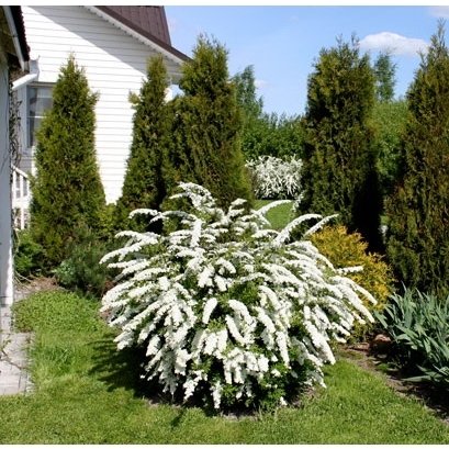 Žydėjimo metu įspūdingai atrodo ilgos išlinkusios šakos, apsipylusios baltais žiedais.