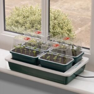 47.00€Į krepšelįElektrinė daigykla „Fab 4“ tai inovatyvus sėklų daiginimo būdas namuose. Ši kompaktiška elektrinė daigykla yra su 4 nedidelėmis daigyklomis – kiekvienos ilgis: 17 cm, plotis: 10 cm ir šildomu pagrindu. Elektrinė daigykla yra ideali sėklų daiginimui bei tinka pastoviam augalų auginimui. Daigyklos turi lengvai nuimamus ir uždedamus dangčius su venticialine anga, kuri užtikrina idealias drėgmės sąlygas. Dėl savo kompaktiško ir nedidelio dydžio, daigyklą galima naudoti bet kur, kur yra elektros šaltinis. Šildomas padėklas yra 8 W, jame yra anglies pluošto elementas, kuris tolygiai paskirsto šilumą. Šis įrenginys nėra reguliuojamas termostatu ir skirtas aplinkos temperatūrai padidinti maždaug 8 °C.