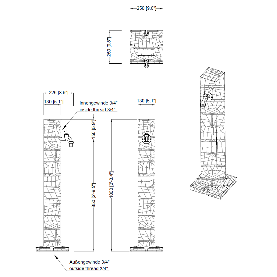 - Vandens kolonėlės specifikacija: